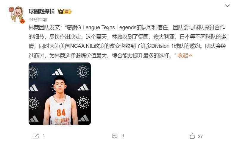 趙探長也發文——林葳團隊感謝德克薩斯傳奇隊的認可,團隊與 球隊會彈跳合作細節希望儘快做出決定。【林葳團隊除了考慮NCAA D1球隊之外還有德國、澳大利亞、日本等不同聯賽球隊的可能性,想選擇對林葳鍛鍊價值最大、綜合能力提升最大的那支】