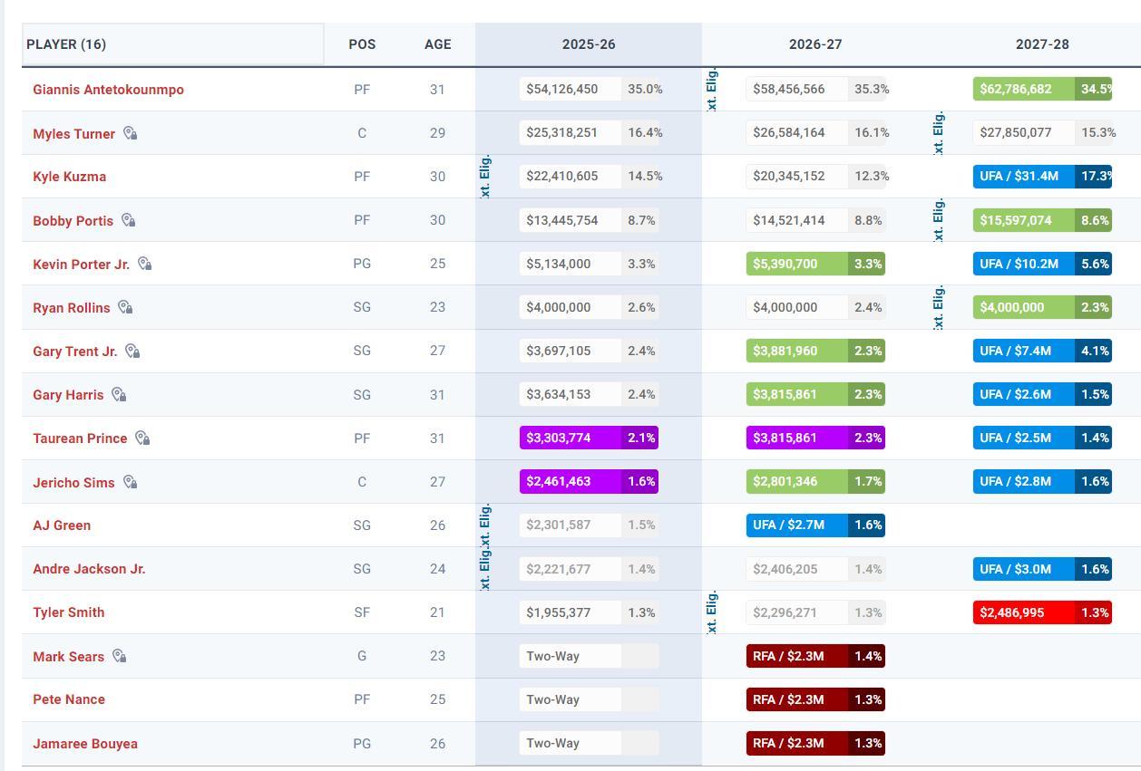 雄鹿這套陣容中能投的人也的確不少,上賽季三分命中率:特納39.6%、羅林斯40.8%、AJ-格林42.7%、特倫特41.6%、普林斯43.9%,就連小波特來到雄鹿後也有40.8%(30場比賽)。