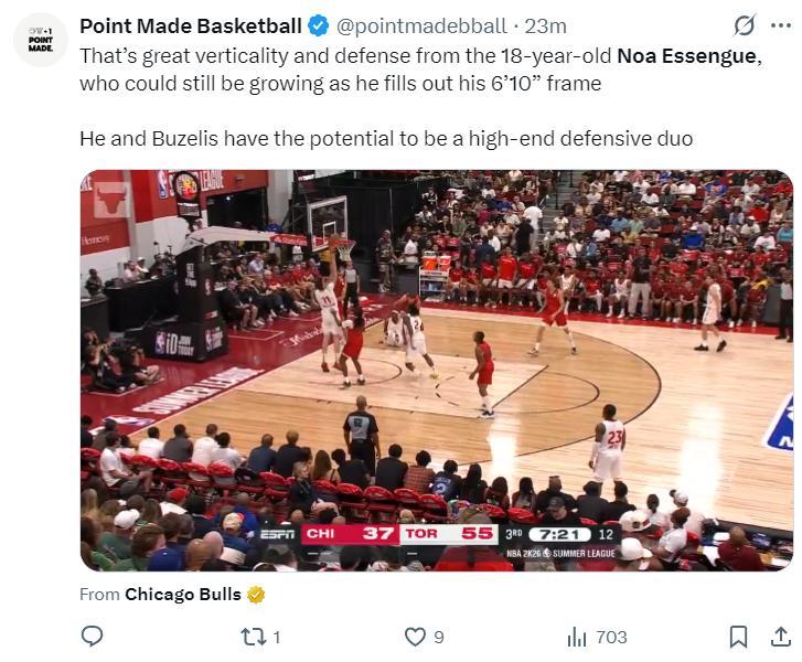 這場比賽日本球員河村勇輝也有登場,他今夏是代表公牛出戰夏聯他正在競爭一個雙向合同位置,此役他替補20分鐘,6中1+三分5中1拿3分4籃板2助攻1搶斷4失誤,命中率16.6%,三分命中率20%,他與埃桑格一樣發揮稀爛。
