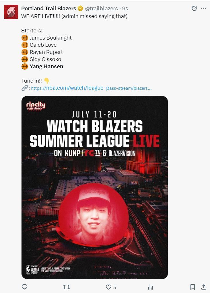 北京時間7月12日,NBA夏季聯賽,上半場打完波特蘭開拓者以53-40領先金州勇士。這場比賽中國球員楊瀚森作爲NBA球員的首秀 ,楊瀚森的表現太出色了,助攻、封蓋、得分引起連連驚呼,上半場14分鐘已經拿到8分2籃板2助攻2蓋帽的全面數據。
