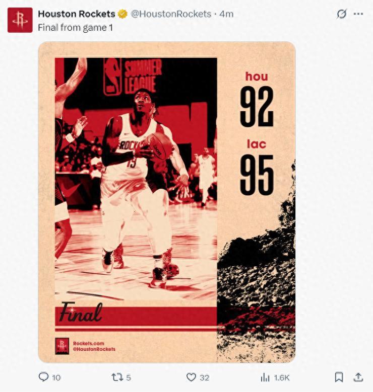 北京時間7月12日,NBA夏季聯賽,火箭以92-95不敵快船。這場比賽謝潑德已經十分出色,原本末節有投絕平三分機會的,可錢德勒發球五秒違例葬送了這個機會,小謝全場比賽28分全場最高。