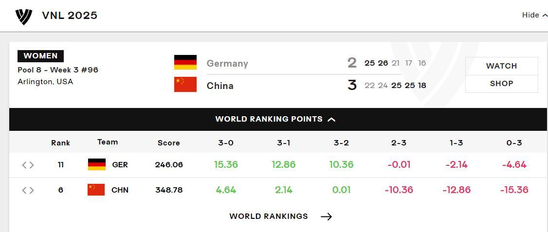這場比賽中國女排如果輸球那麼將扣除鉅額分數,如果0-3輸-15.36分,如果1-3輸-12.86分,如果2-3輸-10.36分,那麼世界第六就要保不住了,最終完成2-3逆轉僅+0.01分,太不容易了。