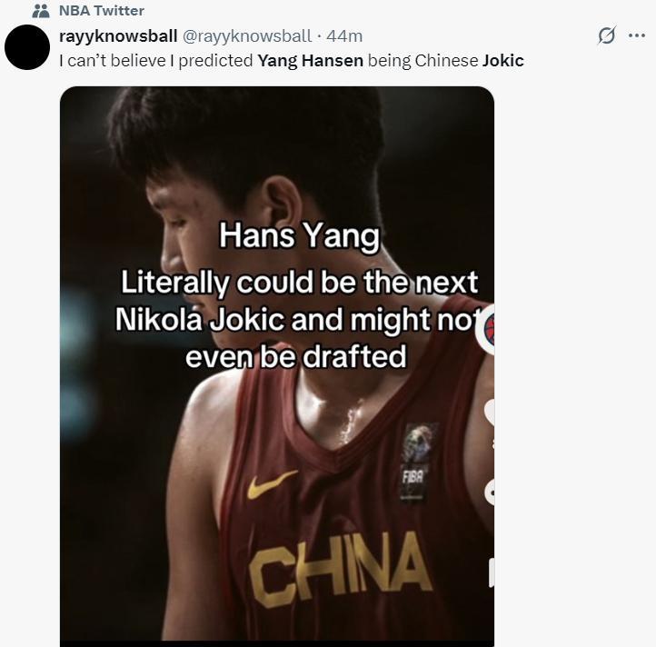 美球迷:我簡直不敢相信我預測成功了,楊瀚森真的是約基奇那樣的球員。