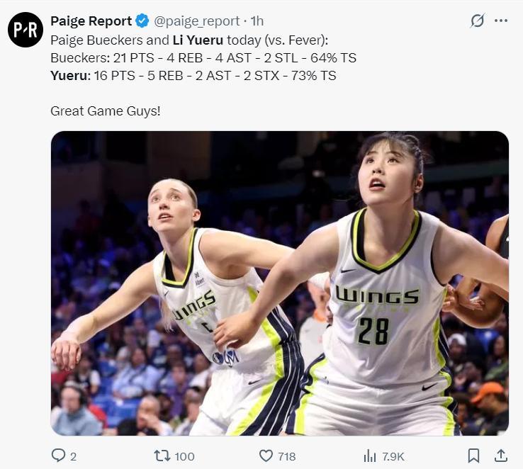 飛翼核心佩奇全場比賽33分鐘,15中9+三分4中2,拿到21分4籃板4助攻2搶斷,她是發揮最出色的那個,第二齣現的就是李月汝了,她比28歲的麥考恩發揮的好,麥考恩雖然也是2.01米但他此役5中2只拿到5分3籃板2助攻。