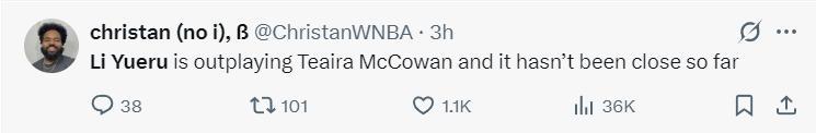 美球迷:李月汝的表現比麥考恩要出色一些。