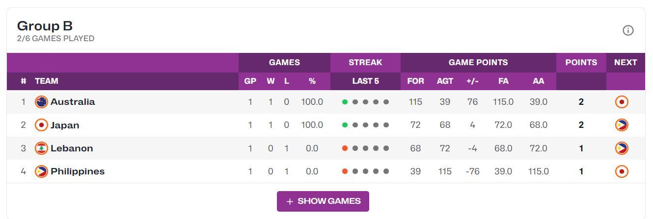 第二節開場澳大利還是專注於防守,打了半節黎巴嫩只拿到4分,黎巴嫩主帥將五個主力都換下提前進行練兵用了第12人。澳大利亞這邊也已經用10人輪換,埃利斯干拔命中一波18-8已經拉開到25分,黎巴嫩終於命中一個三分,澳大利亞反擊連續拿分,半場打完澳大利亞49-17領先黎巴嫩。