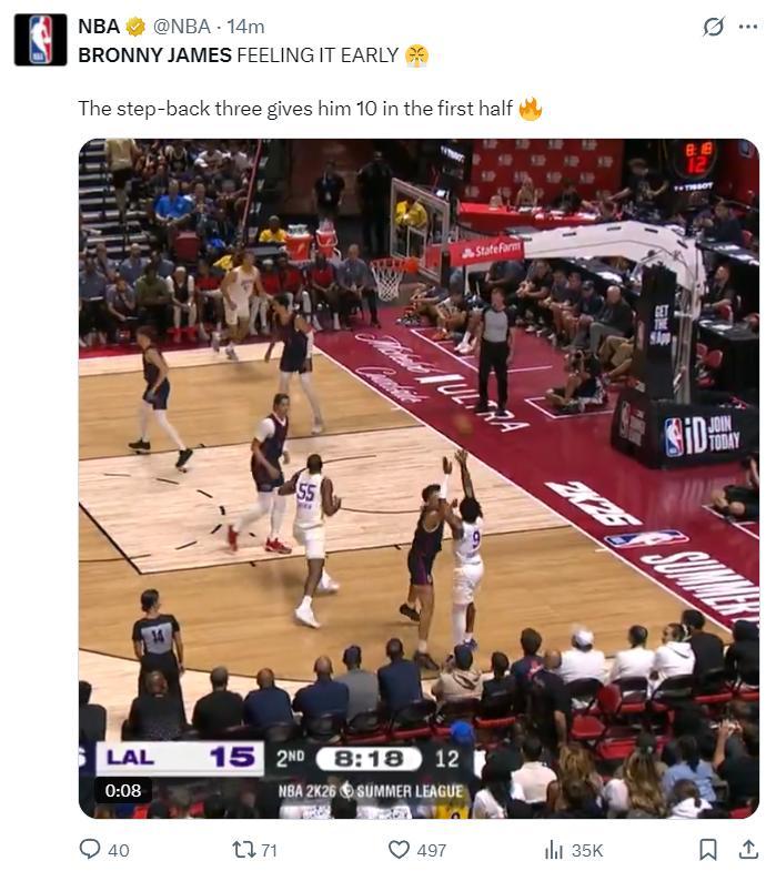 首節4分鐘拿到5分後次節登場一上來又命中一個三分球,隨着這個三分球的命中布朗尼實際上已經打出了今年夏聯最佳上半場了。