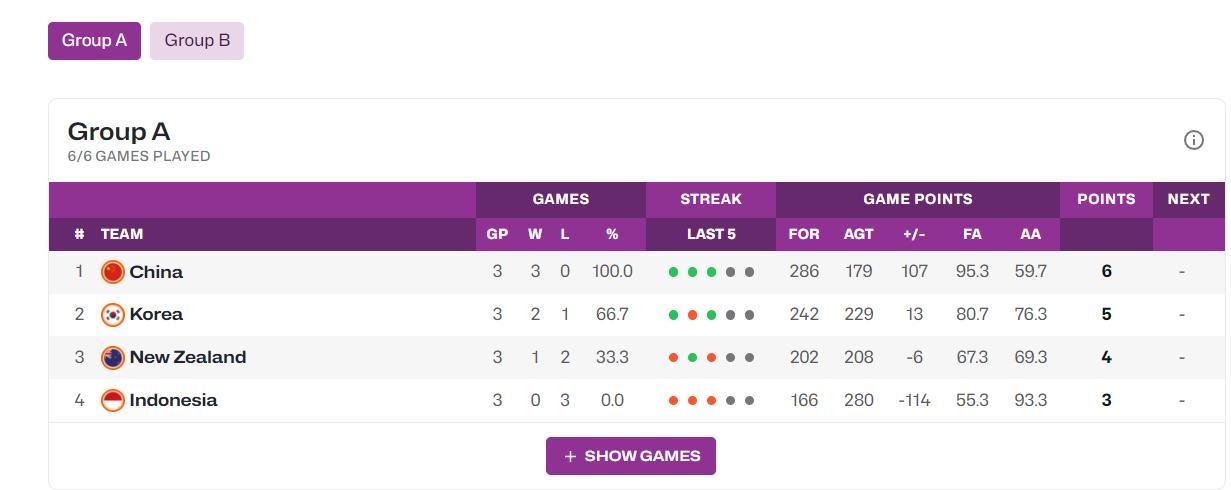 這三場比賽中國女籃分別是110-59大勝印度尼西亞、91-69大勝韓國、85-51大勝新西蘭,三場比賽合計淨勝107分鎖定A組頭名的席位,中國女籃也直通半決賽鎖定四強席位,而首次參與成人組比賽的張子宇發揮十分出色。