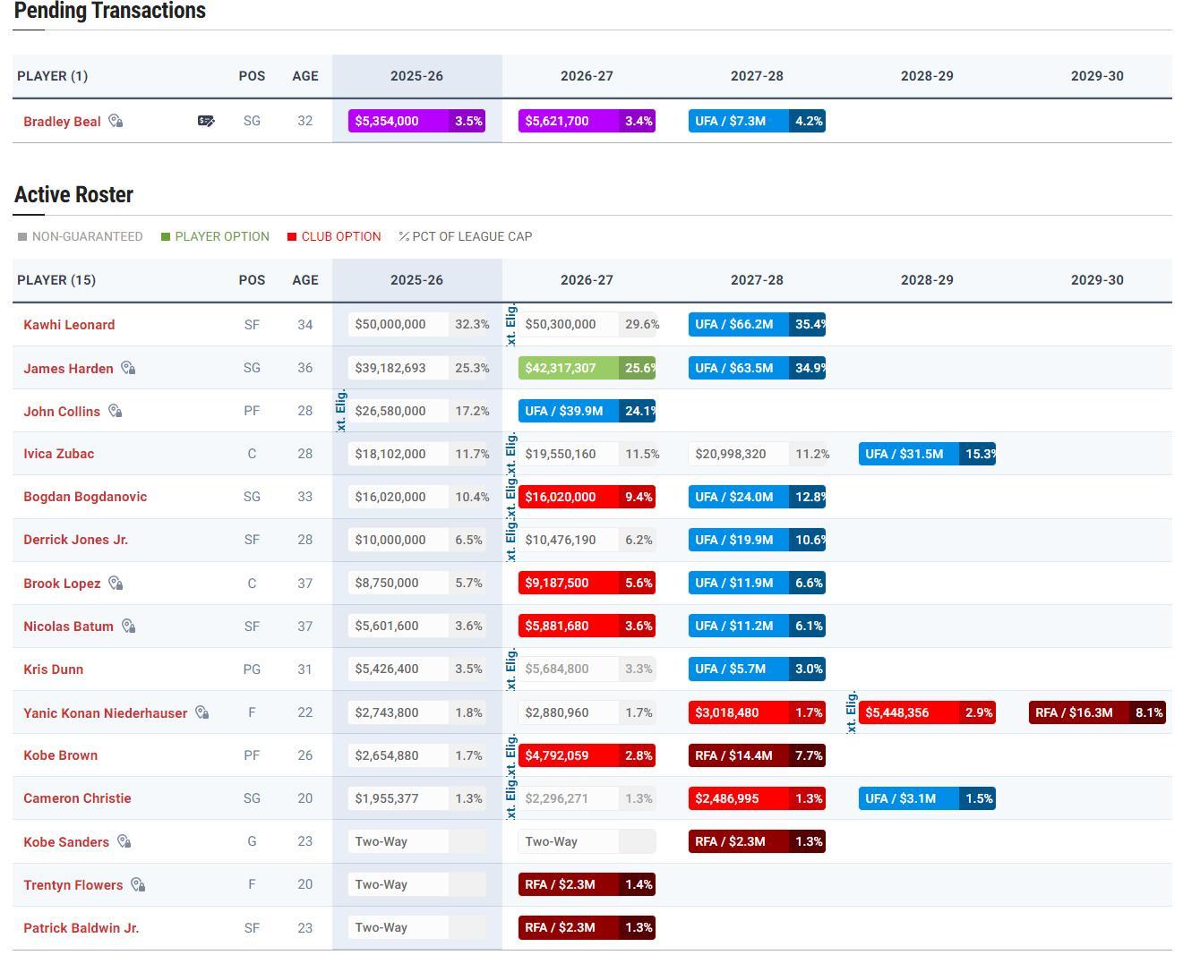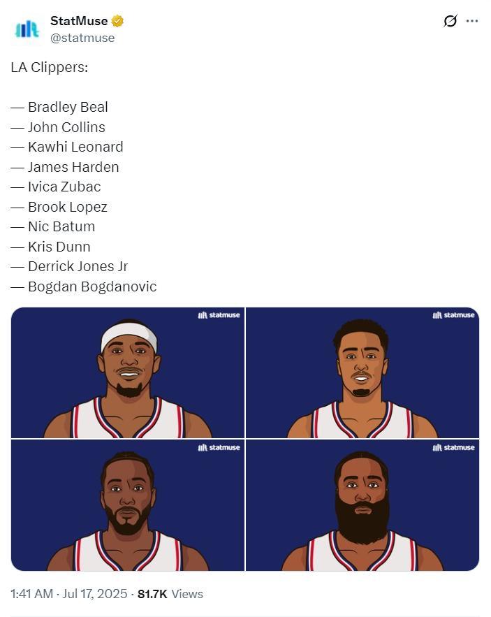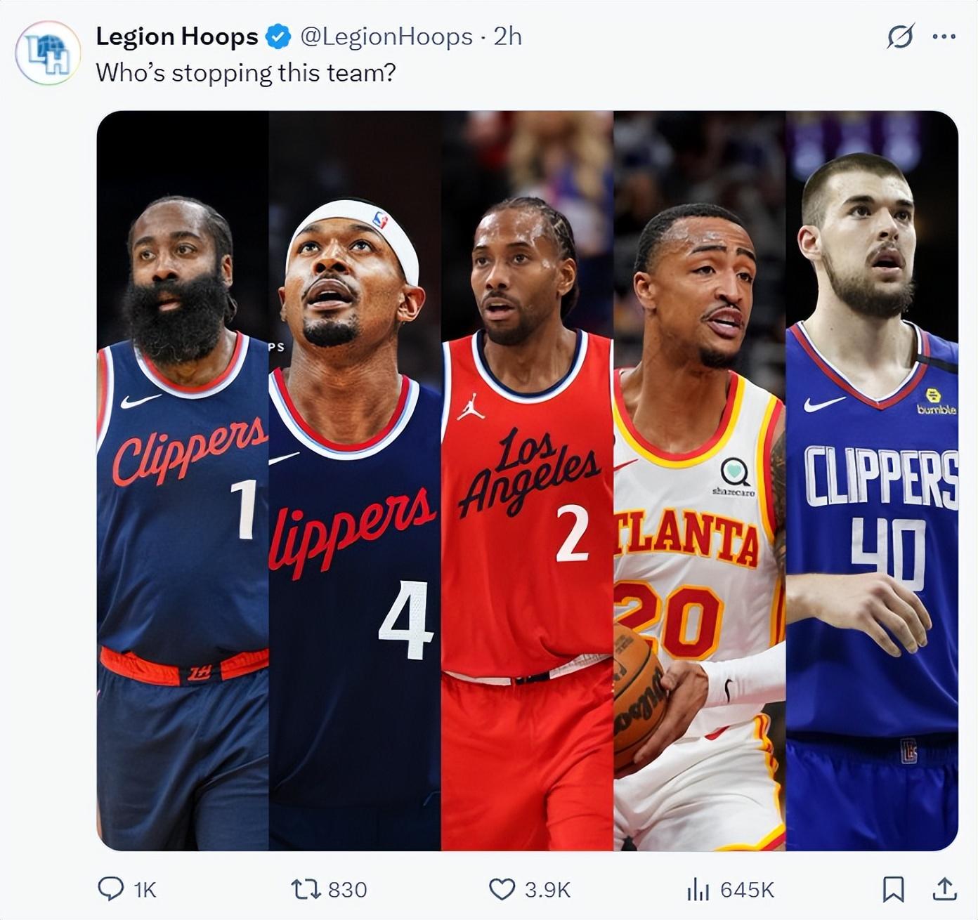 美媒曬出新賽季快船潛在10人輪換:比爾、科林斯、小卡、哈登、祖巴茨、大洛、巴圖姆、鄧恩、小瓊斯、博格丹挪威,大家覺得如何?
