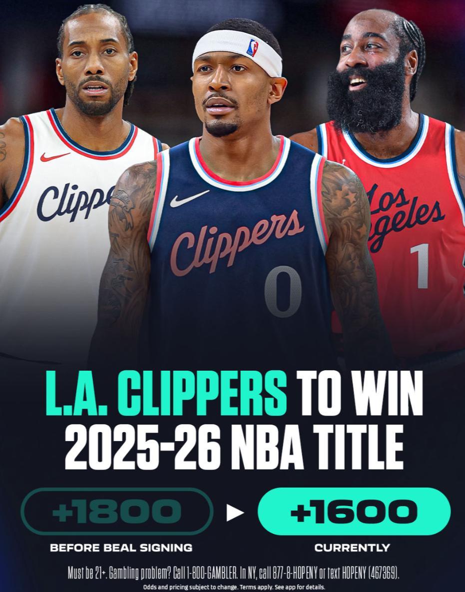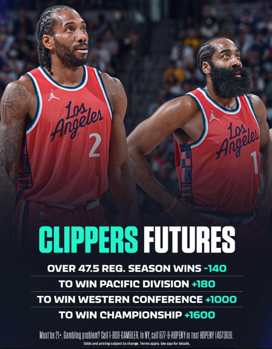 更多細節賠率也已經更新:常規賽超過47.5勝-140(幾乎穩超),拿到太平洋賽區冠軍+180,成爲西部冠軍+1000,拿到NBA總冠軍+1600。看起來比爾對快船的提升還是挺大的。