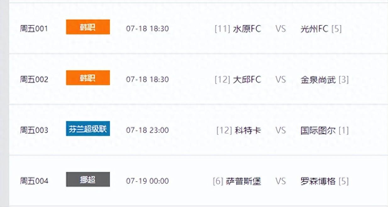週五競足只有四場比賽,早場兩場韓K聯,晚場兩場芬超和挪超。