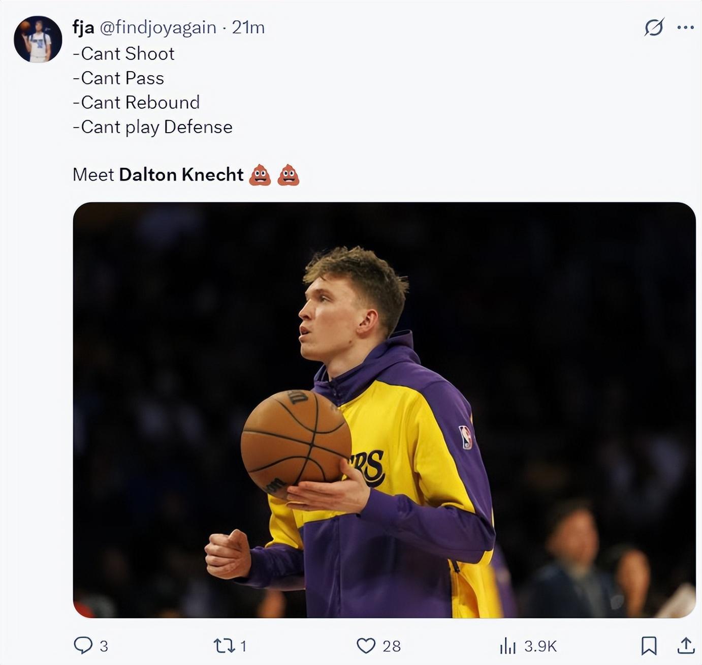 美媒:克內克特不會投籃、不會傳球、不會搶籃板、不會防守,再見過克內克特(大便)。