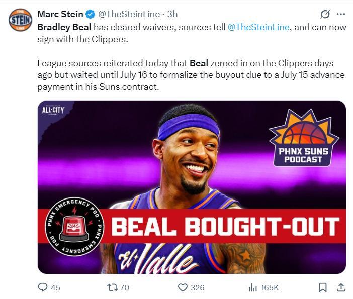 根據《紐約郵報》記者馬克-斯坦恩的報道,實際上在好幾天之前比爾就已經鎖定快船爲他的下家,但因爲太陽合同的預付款要在7月15日纔到賬,所以比爾在7月16日才正式敲定簽約。(均爲美國時間)