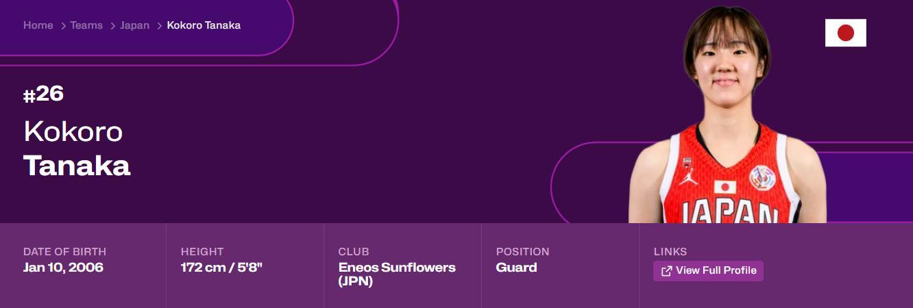 田中心跟張子宇一樣是去年U18亞洲盃的核心,她也是今年直接升入一隊但她是直接打先發,她今年也只有19歲而已,身高1.72米的一號位,她的撤步三分讓人聯想到哈登、庫裏等NBA球星。