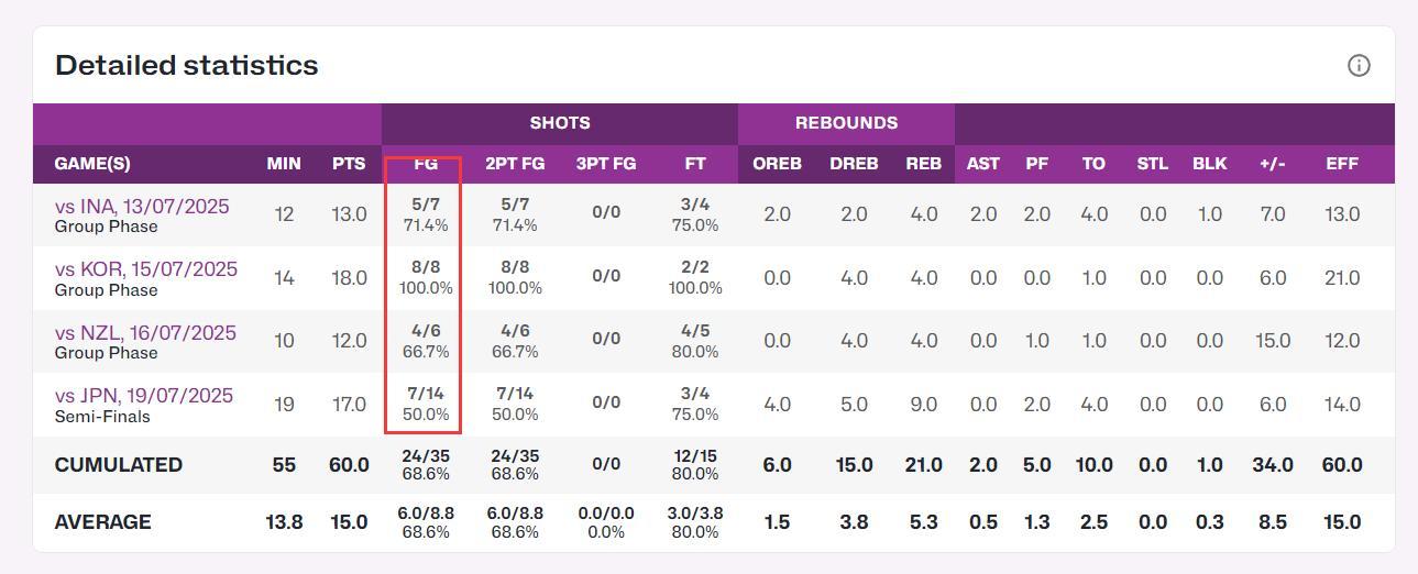 這場比賽張子宇打了四場比賽最長的19分鐘,出手四場比賽最多的14次,但她14中7,命中率50%四戰最低,拿到17分(第二高)9籃板(最高)4失誤(與首秀同最高)。