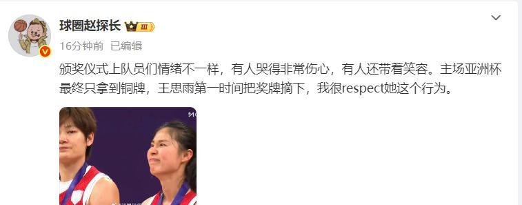 中國女籃大勝韓國女籃拿到亞洲盃的銅牌,致力於衛冕的中國隊最終只獲得銅牌實在是有些難受,銅牌也是自1999年(第四名)後最差的成績。