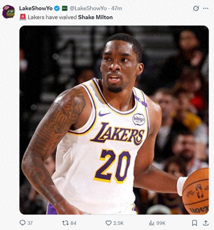 北京時間7月21日,根據ESPN的消息,洛杉磯湖人隊已經裁掉了謝可-米爾頓300萬的非保障合同,因爲湖人僅低於第一土豪線90.9萬,他們必須清理薪金空間才能使用510萬的雙年特例。