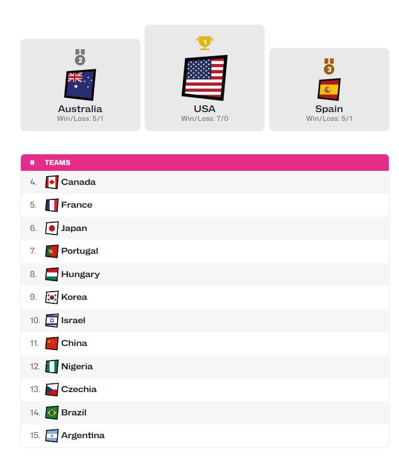 本次U19世界盃合計有15支球隊參與完整的1-15排名也已經確定: