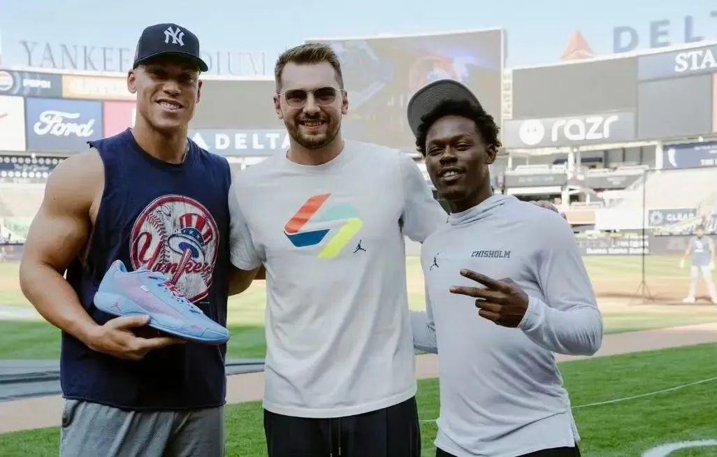 這是今天觀看美職棒大聯盟紐約洋基隊與坦帕灣光芒隊比賽的東契奇。