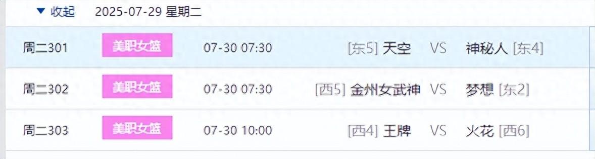 週二競彩籃球WNBA女籃一共是三場比賽。