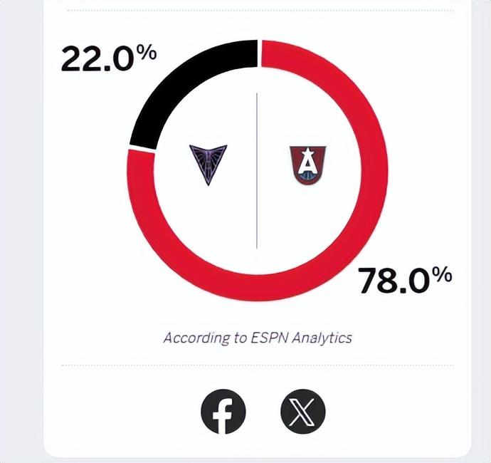 從ESPN的數據來看,夢想取勝的概率高達78%,而女武神僅有22%的可能性,事實上筆者此前就看了一下勝率方面,夢想現在的取勝的概率明顯要高於初盤。