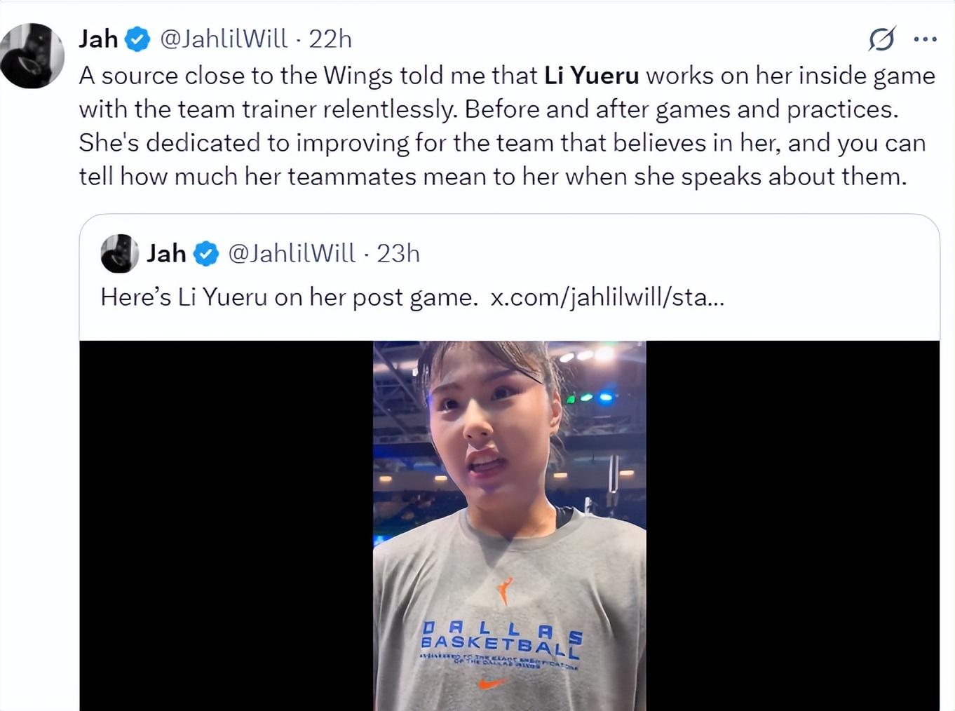 根據飛翼隊記Jahlil Will的報道,一位飛翼關係密切人士透露,李月汝在訓練師的指導下堅持不懈地提升自己的內線技術。無論是比賽前後還是訓練期間,她都全身心的投入到內線技術的訓練中,她只想用自己最好的才能貢獻自己的力量。