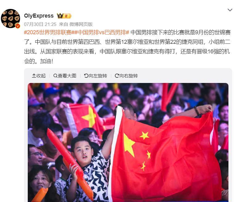3.男排接下來的比賽就是九月份的世錦賽,中國與巴西(世界第四)、塞爾維亞(世界第12)、捷克(世界第22)同組,小組前二才能出線,從世聯賽來看中國跟塞爾維亞、捷克有一打,有希望晉級16強。