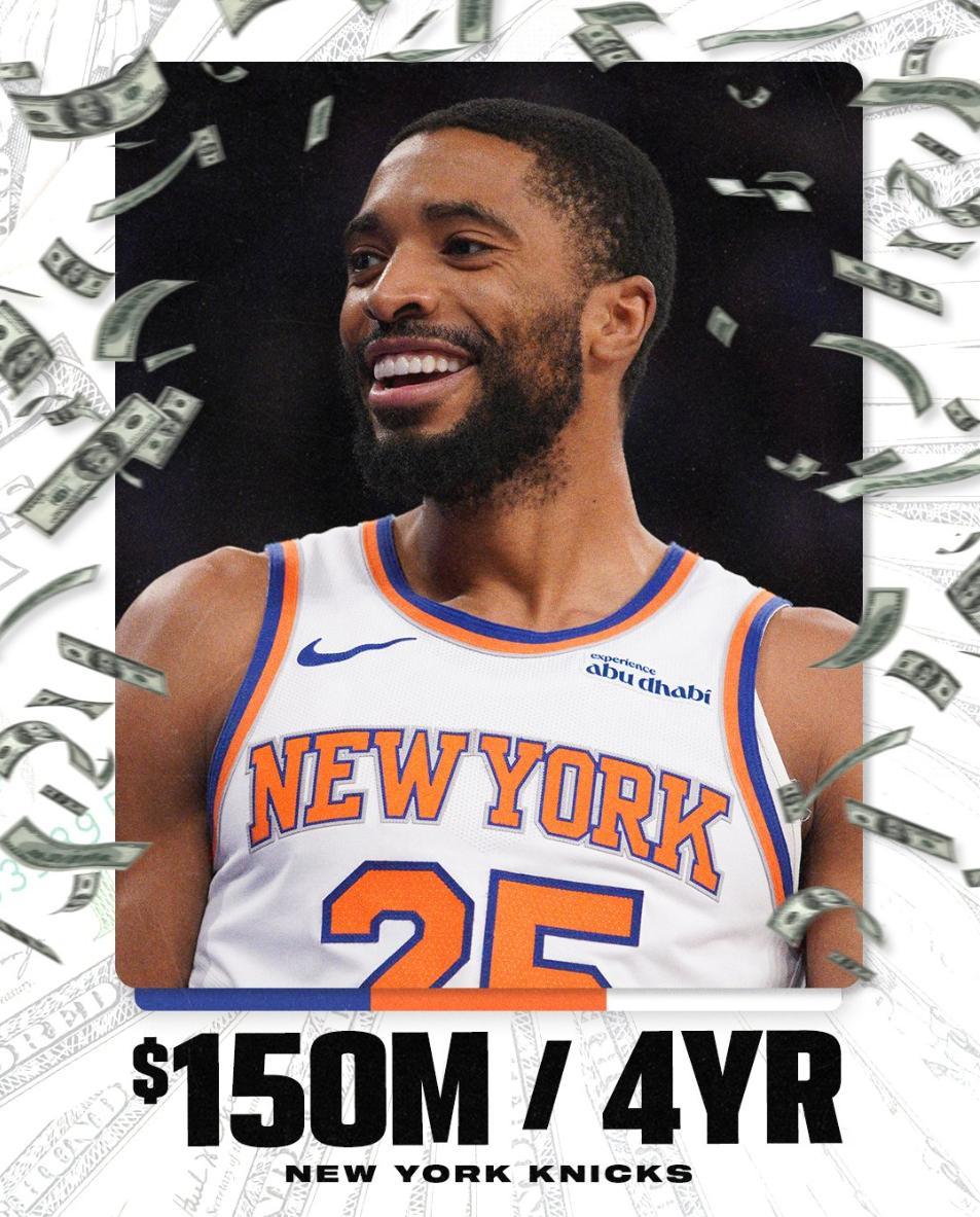 北京時間8月1日,ESPNM名記Shams報道,尼克斯與米卡爾-布里奇斯(下稱大橋)達成一份4年1.5億的提前續約合同,這份合同僅比他在太陽的四年9000萬高6000萬而已,在工資帽大幅上調的情況下算是一份較爲廉價的合同,均薪只有3750萬。