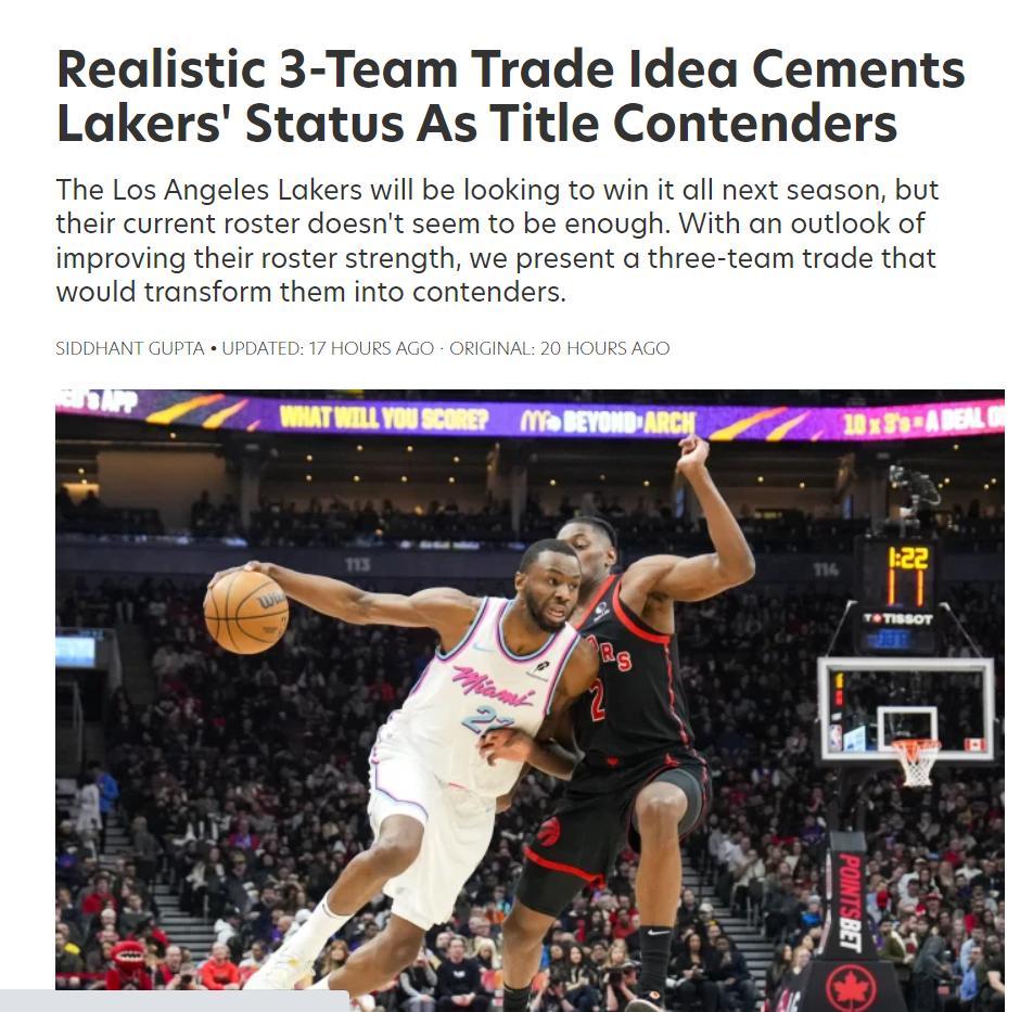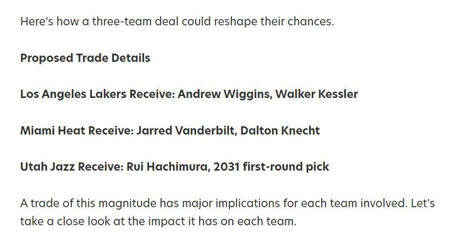 北京時間7月31日,美國媒體FW建議湖人、爵士、熱火進行三方交易,這筆交易FW就是爲了幫助湖人充盈陣容,也是爲了40歲的勒布朗在合同的最後一年奮力一搏。