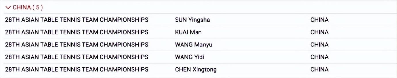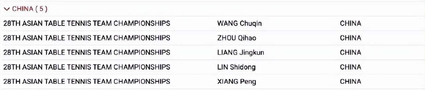 北京時間9月21日,從亞錦賽官網來看,中國隊的名單已經出爐,男團:王楚欽、林詩棟、梁靖崑、向鵬、周啓豪;