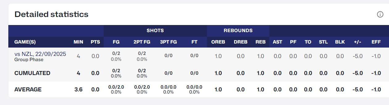李玉乾的U16亞洲盃首秀,3.6分鐘,2中0,拿0分1籃板0助攻0搶斷0蓋帽,正負值-5,效率值-1。那大家知道李月汝U16亞洲盃首秀啥數據嗎?