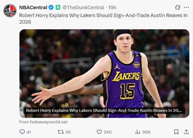 北京時間9月23日,美媒Dunkes爲洛杉磯湖人隊指明瞭方向,他們列舉出三套交易奧斯汀-裏夫斯的方式,能在明夏里夫斯跳出合同前收穫一些能幫助球隊進步的資產。