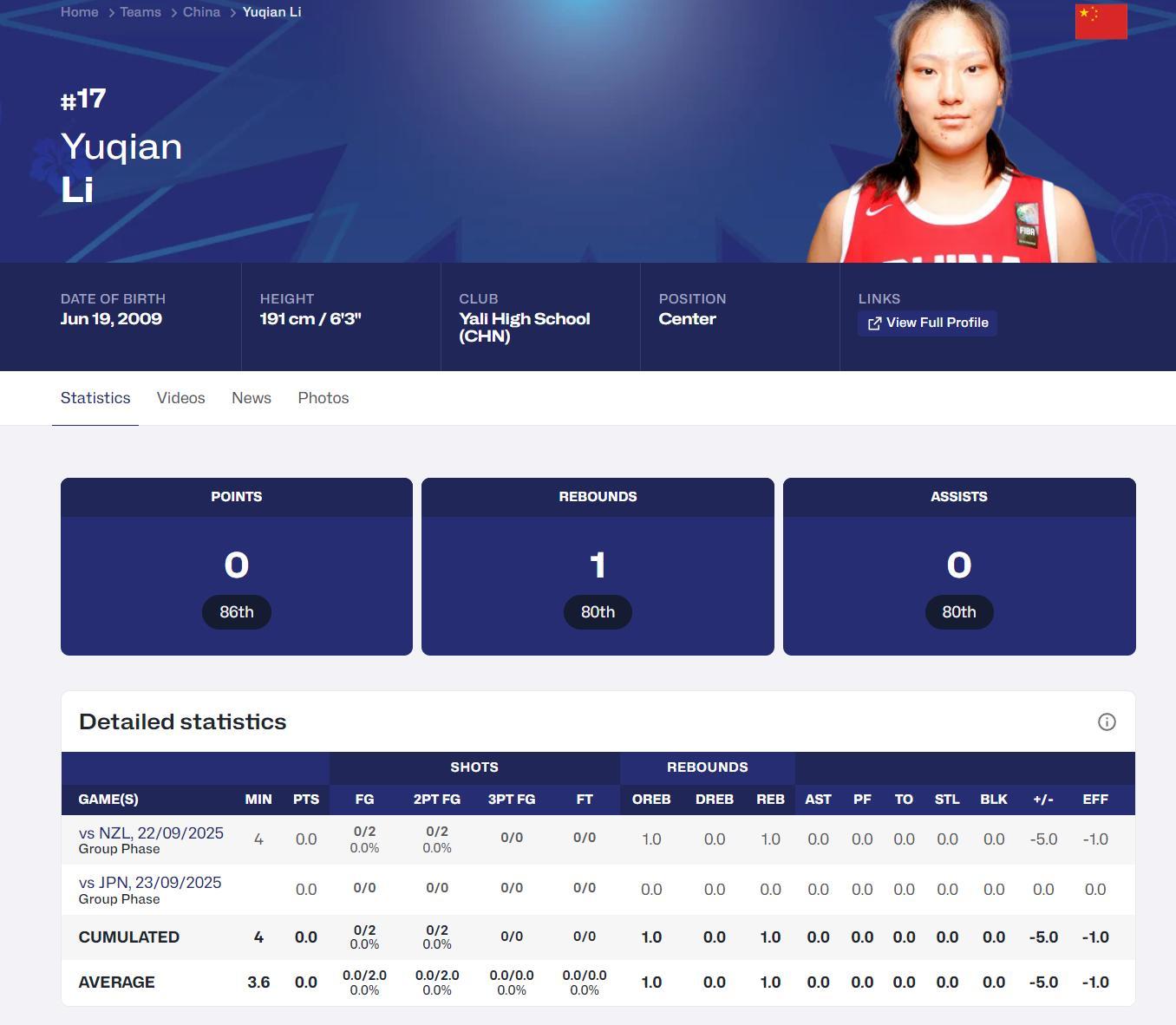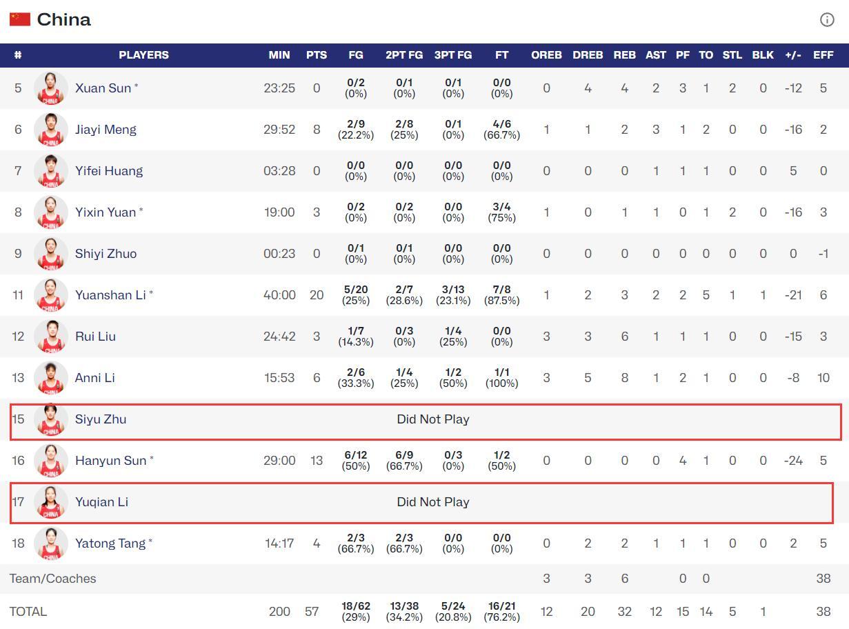 她僅在對陣新西蘭的比賽中登場3.6分鐘,2中0,拿0分1籃板0助攻0搶斷0蓋帽,最關鍵的是這兩場比賽李玉乾連一張特寫都沒有。