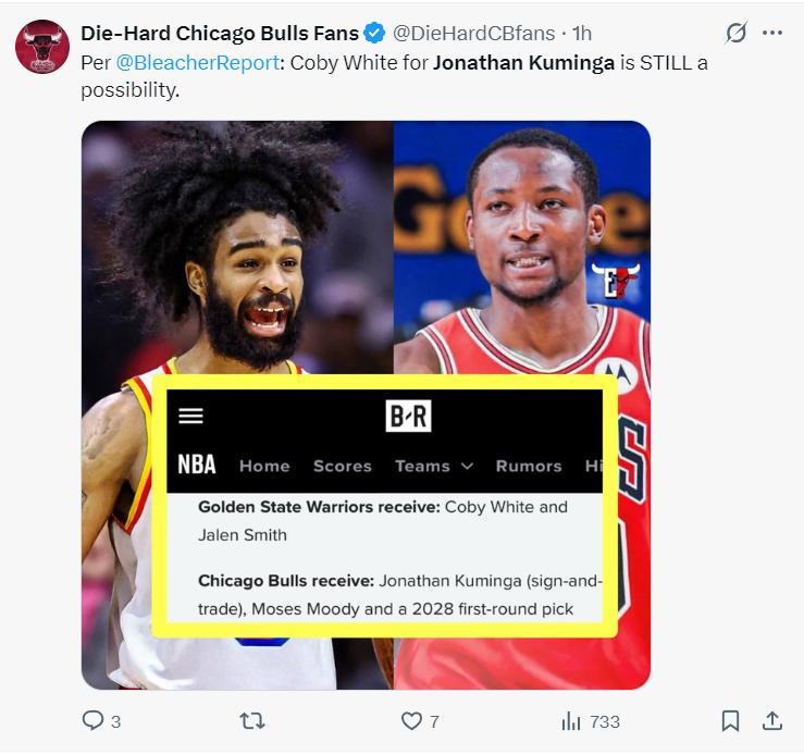 美媒《露天看臺》爲勇士隊有找到了一套新的交易方案,用庫明加、穆迪、2028年首輪籤從芝加哥公牛換科比-懷特、杰倫-史密斯。庫明加需要先簽後換,他們認爲這筆交易可以滿足兩隊的需求打破僵局。