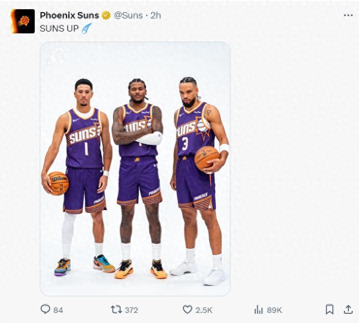 北京時間9月25日,菲尼克斯太陽隊進行了媒體日的活動,布克、格林、狄龍新的三巨頭定妝照也出爐,杰倫-格林還站在C位上,感覺1.93米的杰倫-格林比1.96的布克矮不了多少,狄龍這個1.98似乎也有摻水。