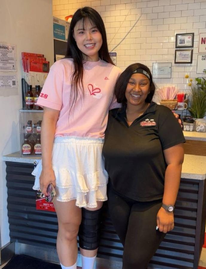 9月18日李月汝造訪了達拉斯當地的餐廳“Breakfast Brothers”,這家餐廳隨後還發文感謝李月汝的到來,這一天李月汝的右膝上還是佩戴着護膝,這個護膝跟一週前團建的金屬護具略有不同,感覺小寶的膝傷又好了一點點。