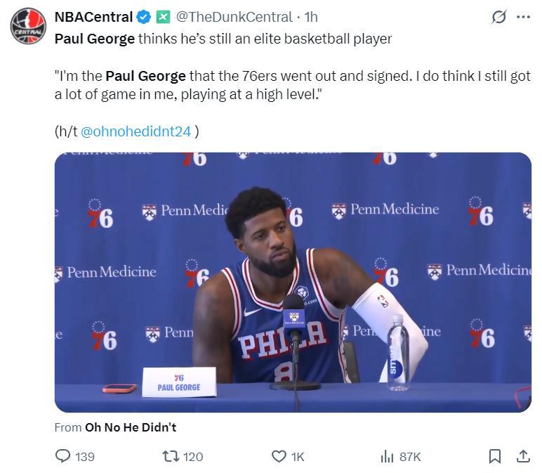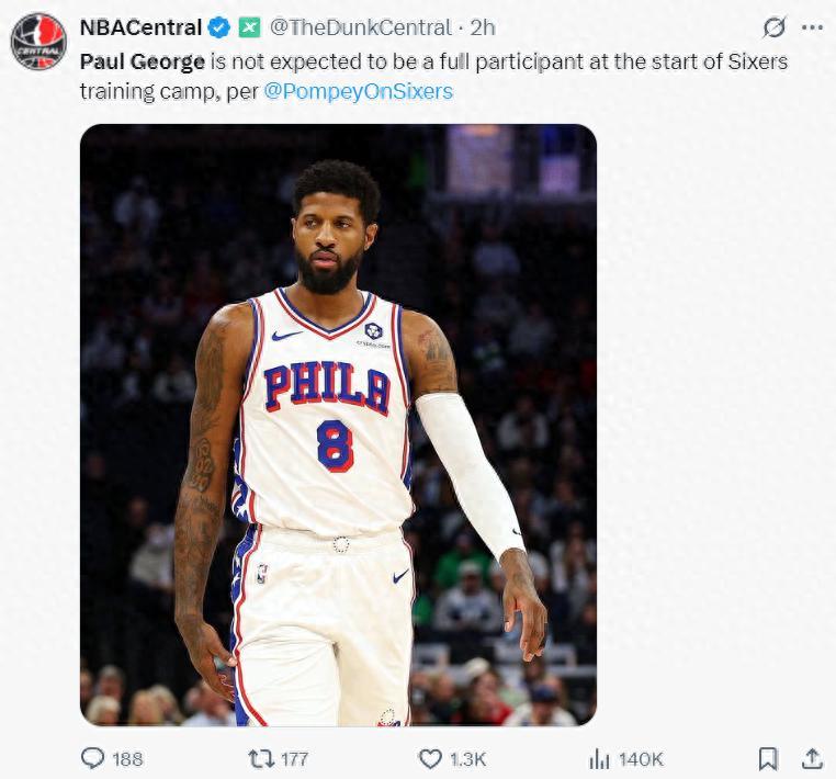 談到自己7月份剛剛接受了左膝關節鏡手術,喬治表示自己的狀態越來越好,接下來幾周的訓練對自己能否在賽季初登場尤爲重要,希望自己能趕快登場,就身體的感覺來說比去年好不少,堅信自己還是聯盟頂尖的球員,我是那個被費城高薪簽下的喬治,我自己依舊有巨大的潛力,仍能打出高水平的籃球。
