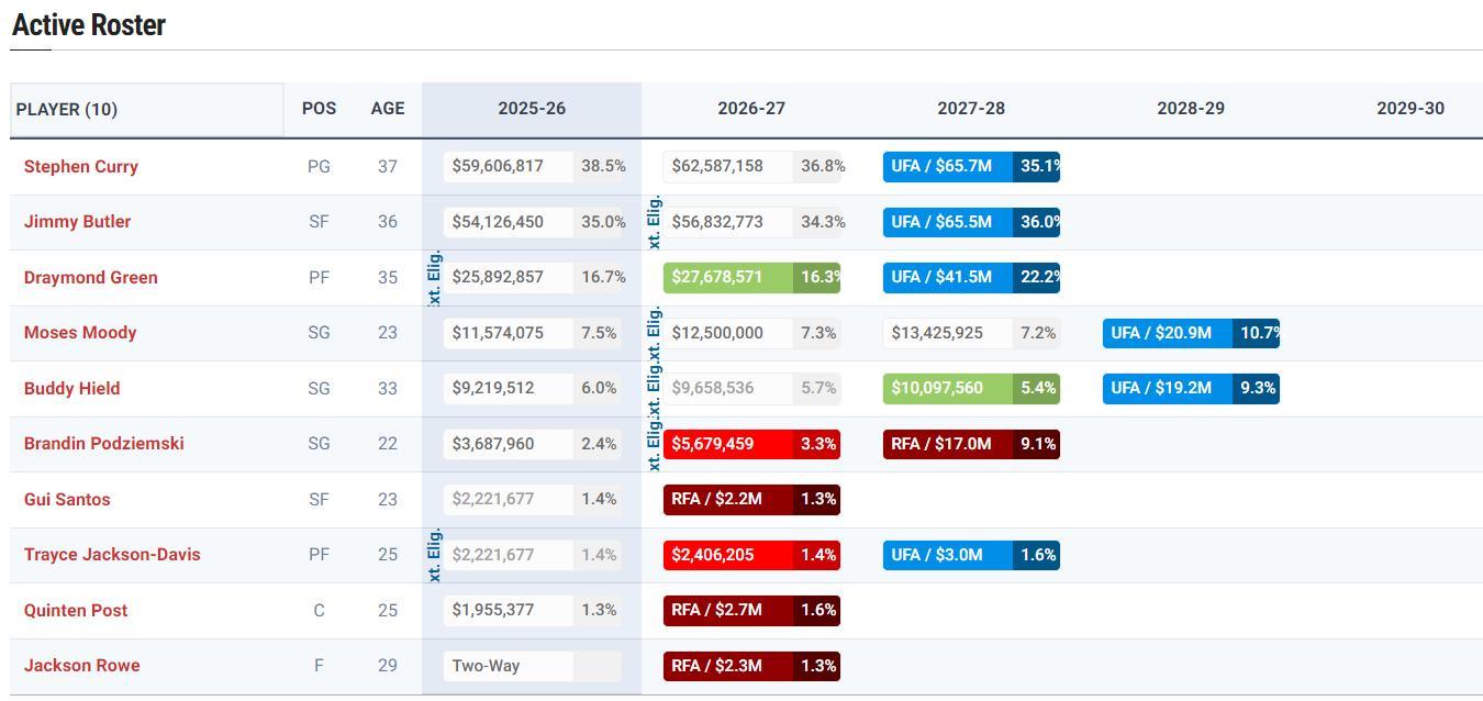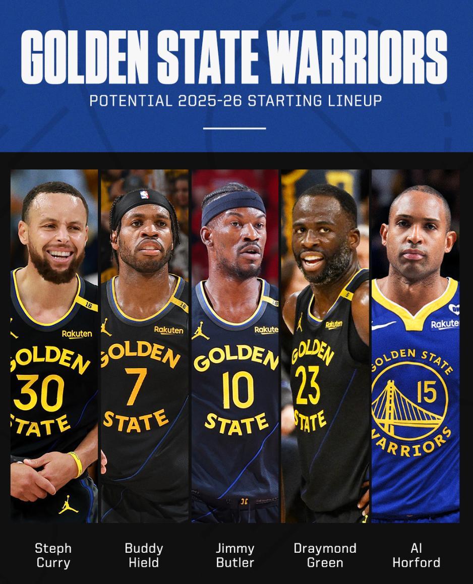 ESPN曬出目前潛在的先發五虎:庫裏37歲、希爾德33歲、巴特勒36歲、追夢35歲、霍福德39歲,這潛在的先發合計180歲,平均年齡高達36歲,這樣的陣容如何去衝擊總冠軍?這與鄧利維所說繼續幫助庫裏衝擊總冠軍的言論似乎背道而馳。