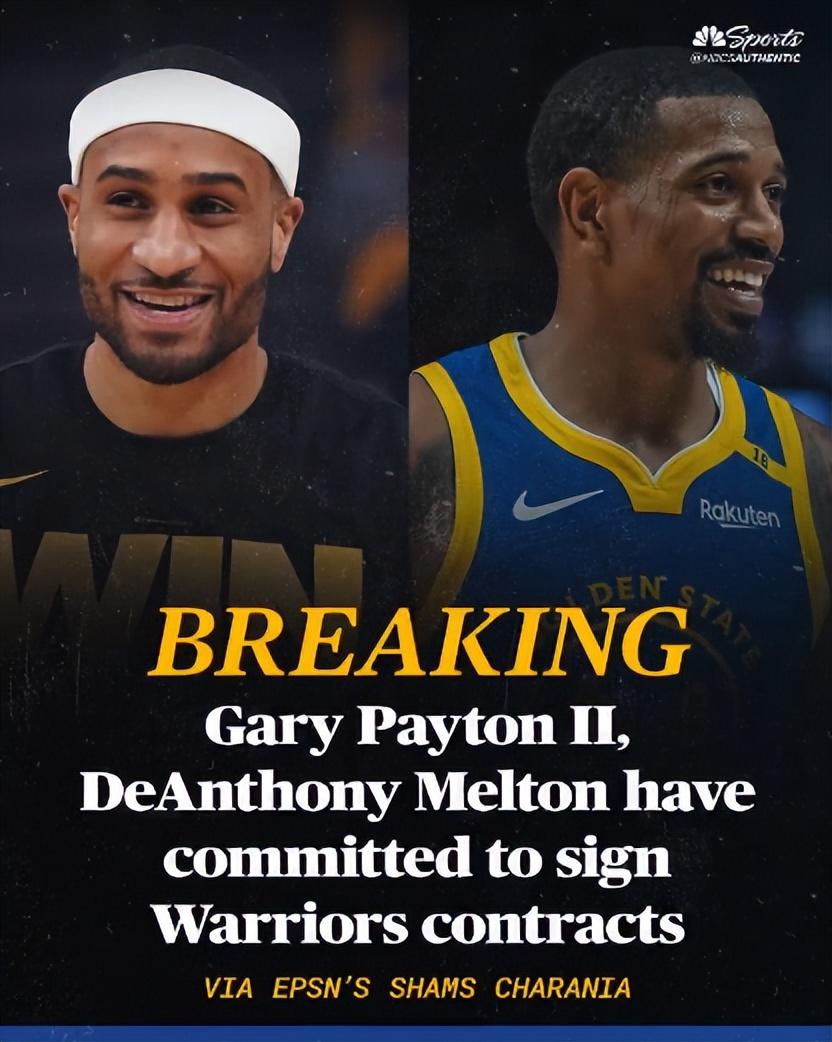 除此之外,勇士隊還接連簽下了小佩頓、梅爾頓兩位後場球員,這兩人的合同細節也沒有披露但大概率都是老將底薪,因爲勇士是超帽球隊。