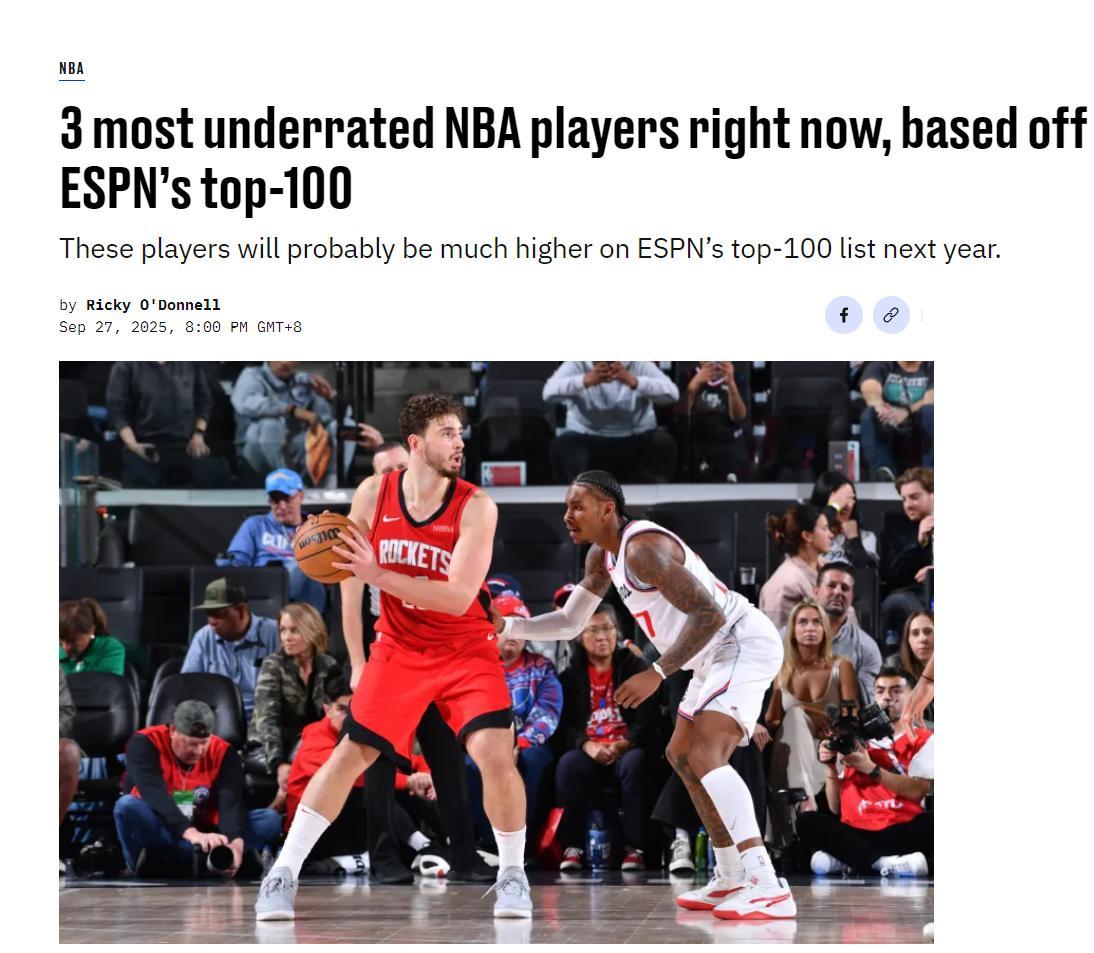9月27日,美媒SB NATION發文認爲ESPN的百大球星有三人被低估了,第一個就是申京,第二個是三球,第三個是錫安,這裏我們只討論申京。