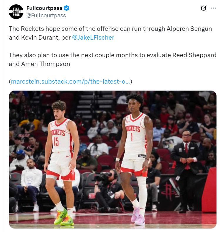 9月27日,BR記者傑克-費舍爾則透露,火箭預計不會採取應對性的引援,球隊願意花費數月來考察謝潑德、阿門擔任持球手時的表現。這說明此兩人的角色會在新賽季無限放大。