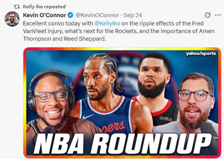9月24日,雅虎火箭記者凱利-伊科做客NBA記者凱文-奧康納直播間,這兩人都覺得範弗利特賽季報銷後這支球隊的前景堪憂,一方面球隊沒有薪金空間完成簽約引援,另一方面球隊有多位球員要在12月15日後才能被交易,而且杜蘭特、芬尼史密斯到來狄龍、格林也走了,球隊的投射能力也沒有提升多少,簡單來說缺乏組織能力、投射能力。