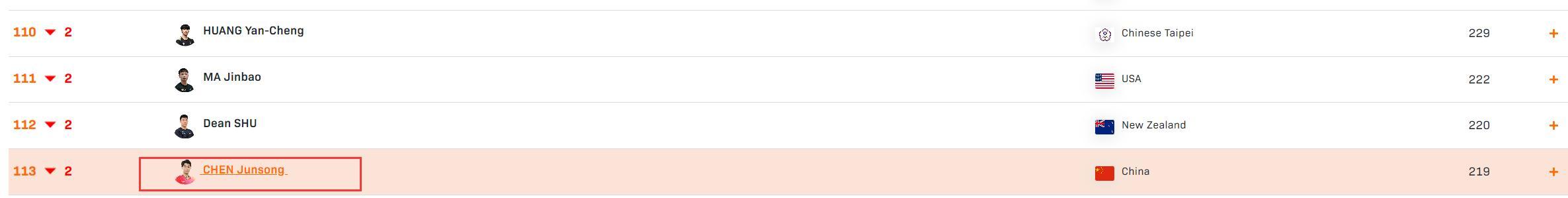 陳俊菘今年20歲,來自福建廈門13歲時進入福建省隊,2023年他在U19世青賽上拿到男雙/混雙兩個冠軍,男單項目他是亞軍,實際上他是從2025年開始才進入國乒二隊開啓了自己的WTT征程,他的積分只有219分而已。