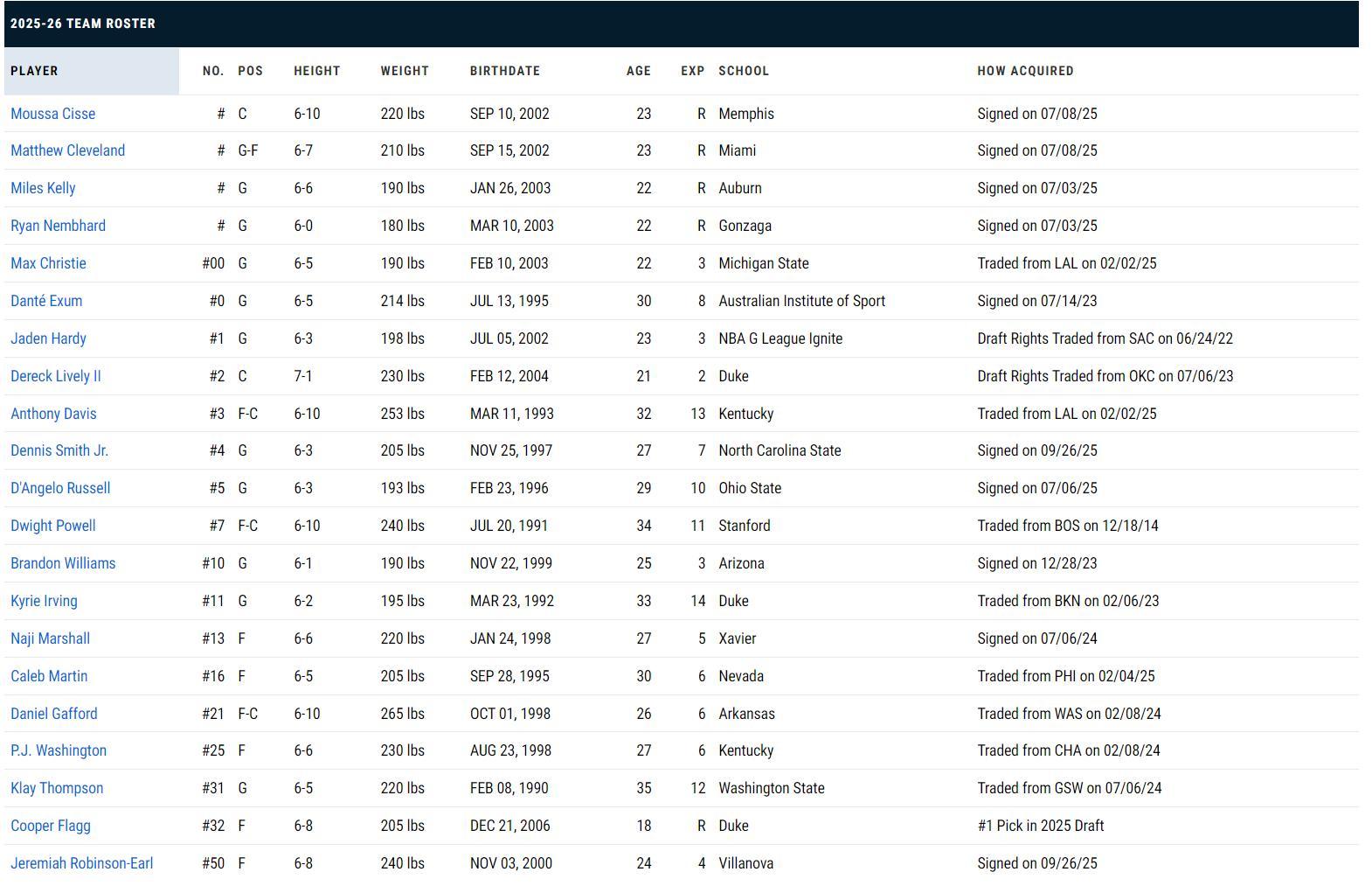 獨行俠訓練營21人名單也已經確定,根據基德採訪所說這份大名單隻有歐文無法參與合訓,其餘的人都將參與: