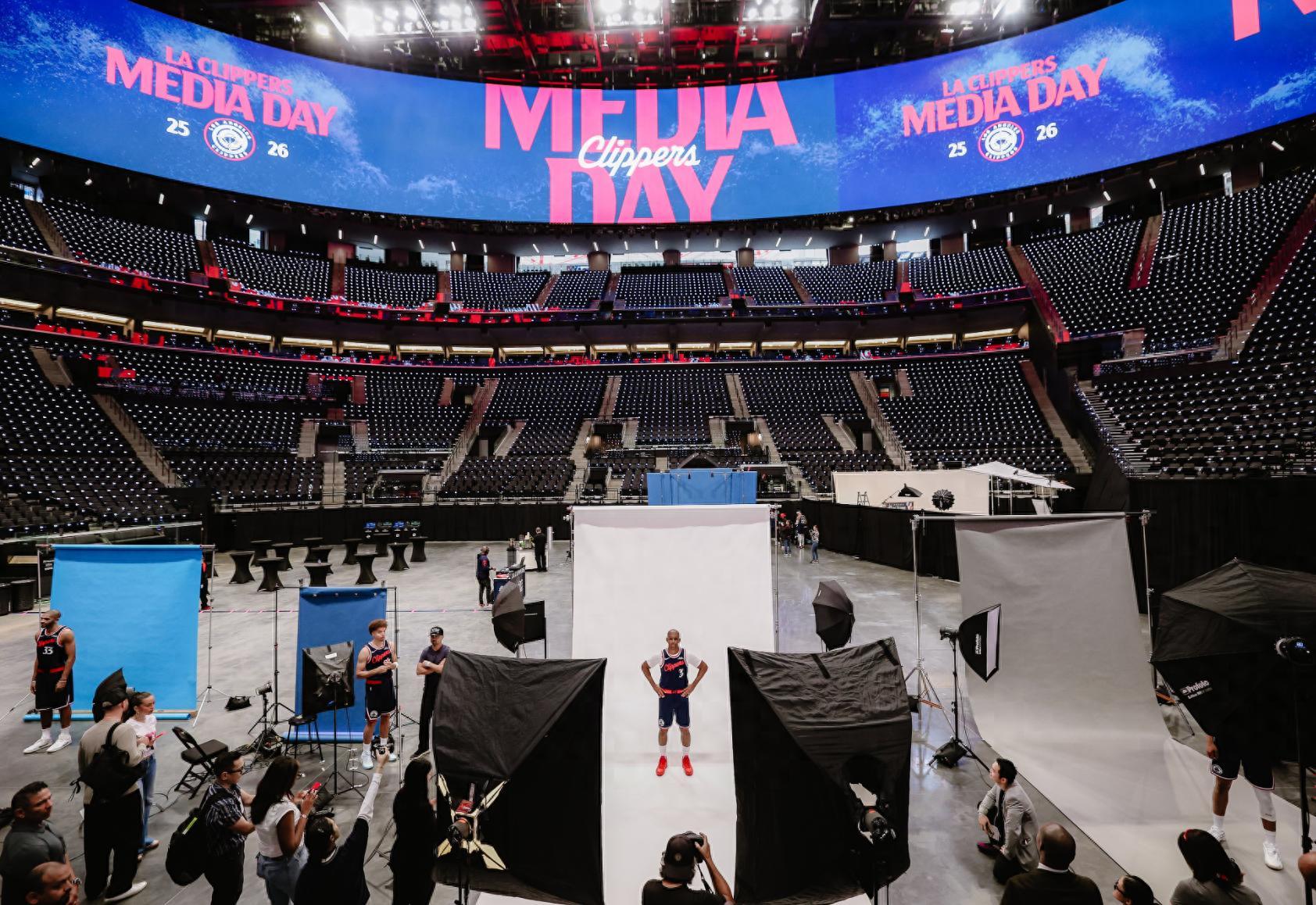 北京時間9月30日,洛杉磯快船隊進行了媒體日活動,前船長保羅拍攝定妝照時快船官方曬出了一張球館的全景圖,隨後哈登、倫納德、祖巴茨、比爾等人都進行了定妝照的拍攝。