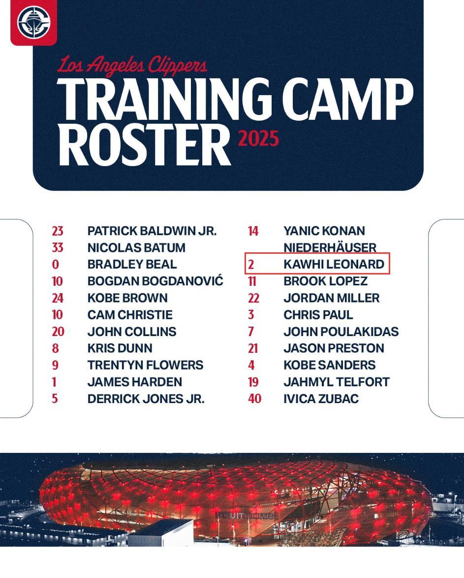 從快船官方給出的21人訓練營名單來看科懷-倫納德並沒有受到‘陰陽合同’的影響,他還是在大名單內,這21人分別是: