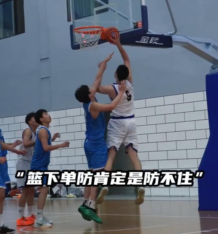 這個角度可以看到於善元的手掌有多大,他在籃下面對防守時直接起來就隔扣,單臂隔扣,這孩子天賦的確是國內最頂級的水準,遼籃簽下他絕對不會錯。