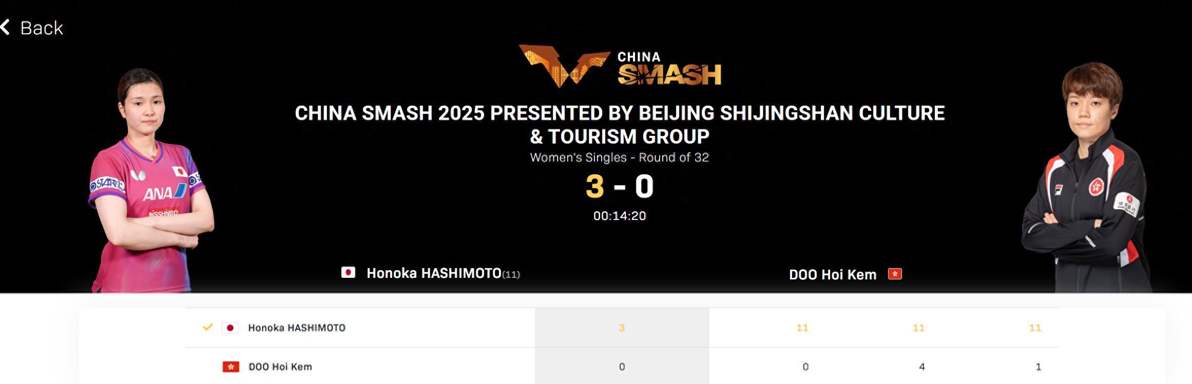 北京時間9月30日,WTT北京大滿貫女單1/16決賽,橋本帆乃香3-0橫掃杜凱琹,三局比分:11-0、11-4、11-1。對,你們沒有看錯,杜凱琹三局只得到5分,而且第一局掛零,橋本帆乃香是將杜凱琹打得滿地找牙。