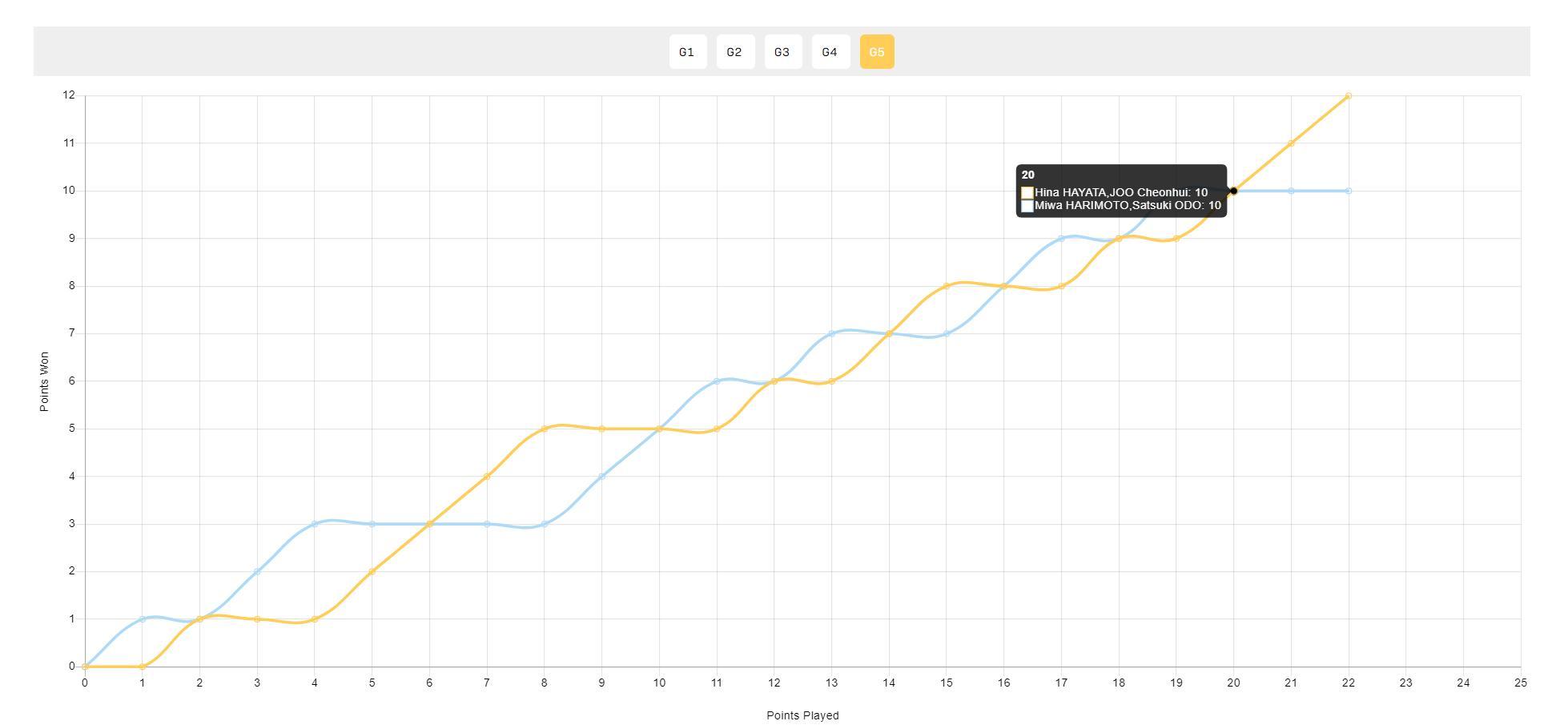 決勝局兩隊的比分是交替領先,張本/大藤一度是8-7領先,可之後被早田/朱芊曦連拿2分後陷入困局,兩隊打到10-10,最關鍵的兩分張本/大藤還是棋差一着,只能說時也命也。