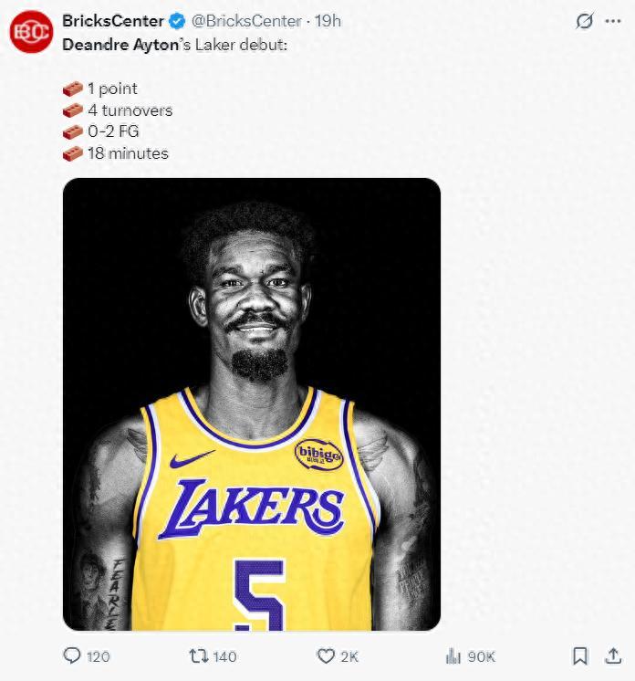 艾頓在湖人的首秀堪稱災難,18分鐘,2中0,拿到1分4失誤8籃板1搶斷2蓋帽,他最拿手的中投我們沒有看到,但看到了他最拿手的‘畏懼對抗’、‘軟到極致’。